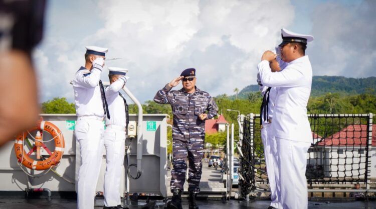 Komandan Komando Daerah TNl Angkatan Laut (Dankodaeral) IX, Laksamana Muda TNI Hanarko Djodi Pamungkas, S.H. menyambut kedatangan KRI Raden Eddy Martadinata-331 (REM-331) yang sandar di Dermaga Tawiri Kodaeral lX, Kota Ambon, Maluku pada Selasa (7/4/2026).