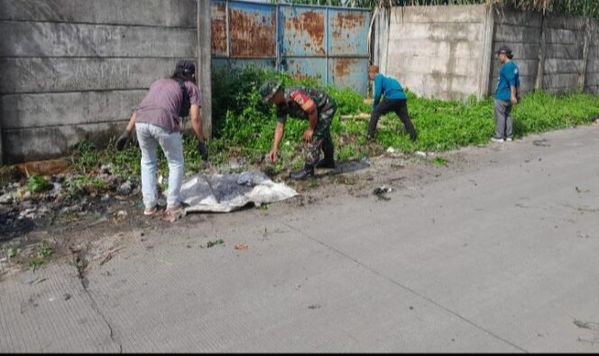 Suasana kebersamaan terlihat kuat antara Babinsa Koramil 04/Cikupa, Kodim 0510/Trs yang dipimpin Serma Karjo dan Serma Semangat saat melakukan Karya Bhakti bersihkan sampah di Desa Bitung Jaya, Kecamatan Cikupa Kabupaten Tangerang, Kamis (09/04/2026).