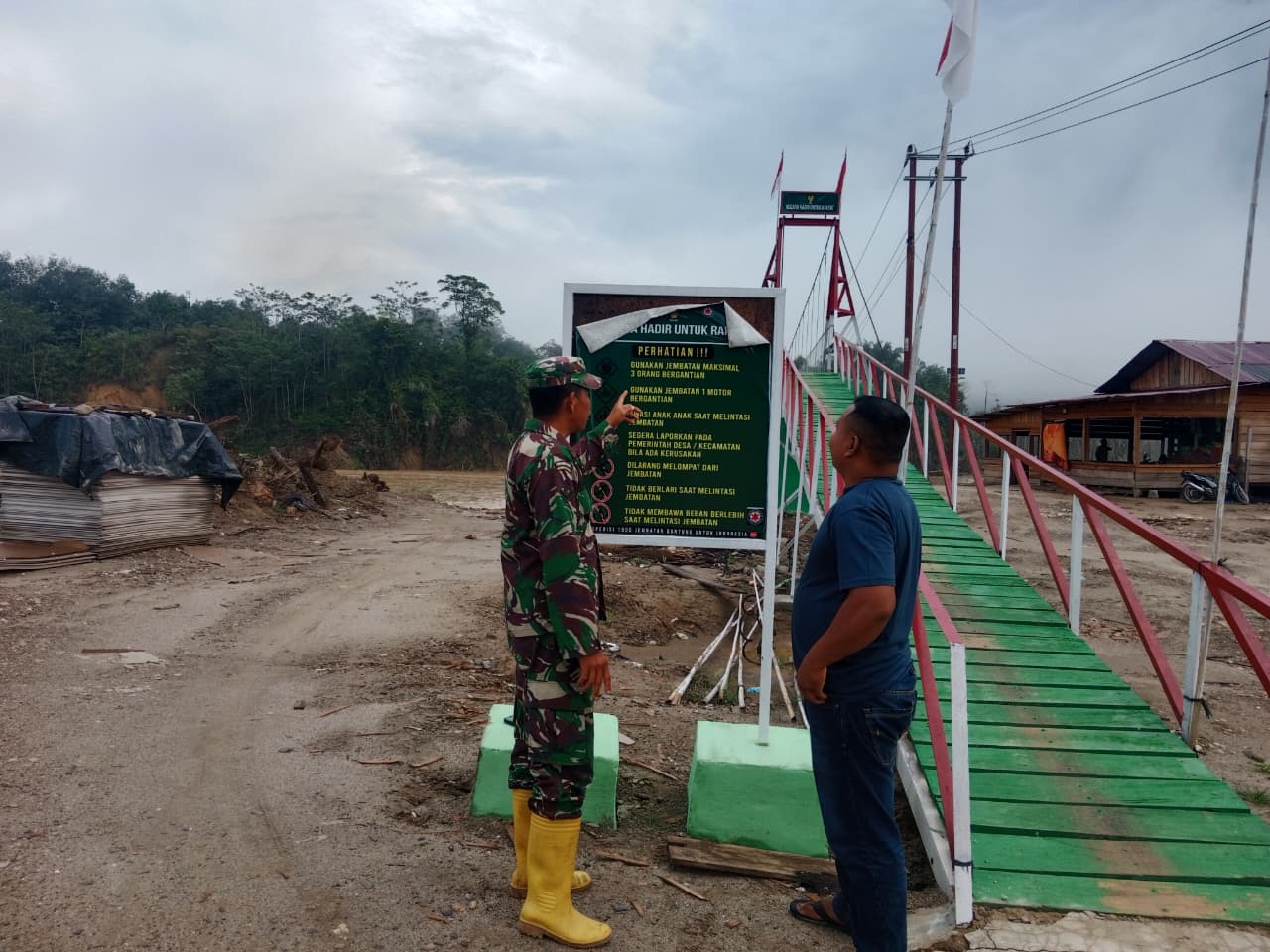 Dalam kegiatan tersebut, Serda Supriadi secara humanis mengingatkan warga agar tidak melintasi jembatan dengan membawa beban yang melebihi kapasitas. Hal ini penting guna menghindari risiko kerusakan bahkan potensi kecelakaan yang dapat membahayakan keselamatan pengguna jembatan.