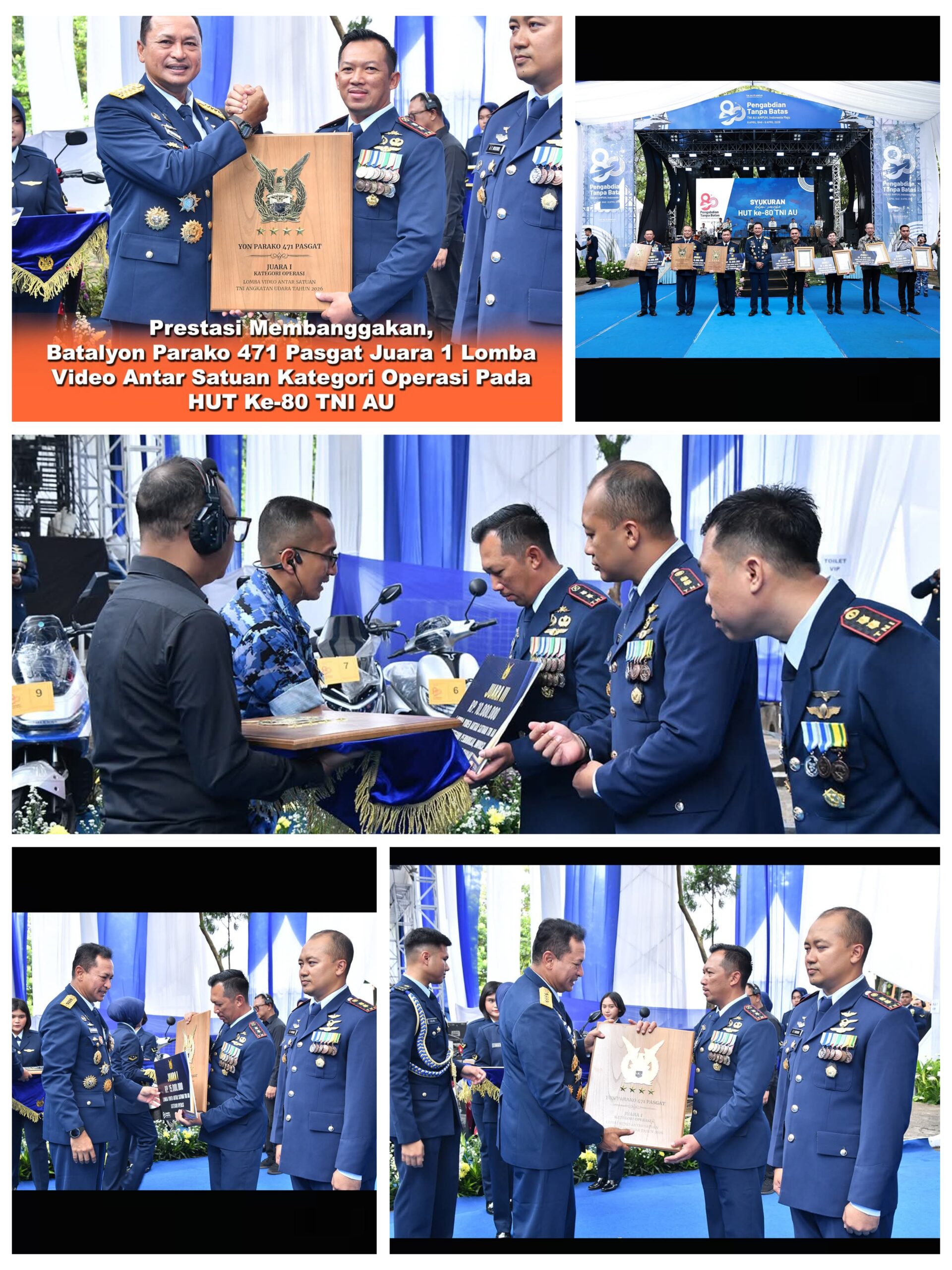 Jakarta – Batalyon Parako 471 Pasgat. Batalyon Parako 471 Pasgat kembali menorehkan prestasi gemilang dengan meraih Juara 1 lomba video antar satuan kategori Operasi dalam rangka HUT ke-80 TNI Angkatan Udara. Kegiatan berlangsung di Lapangan Mabesau, Cilangkap, Jakarta Timur, Kamis (9/4/2026).
