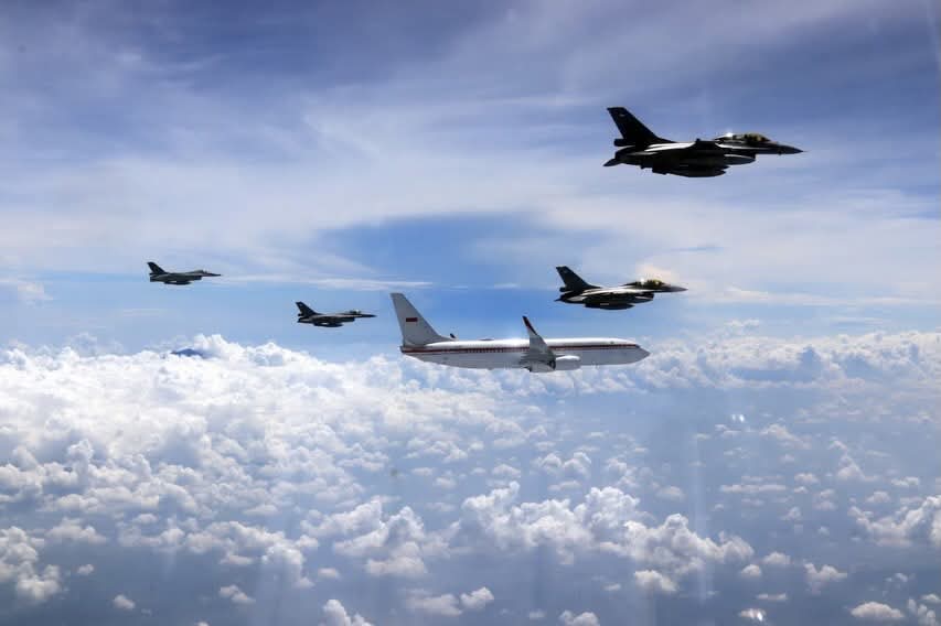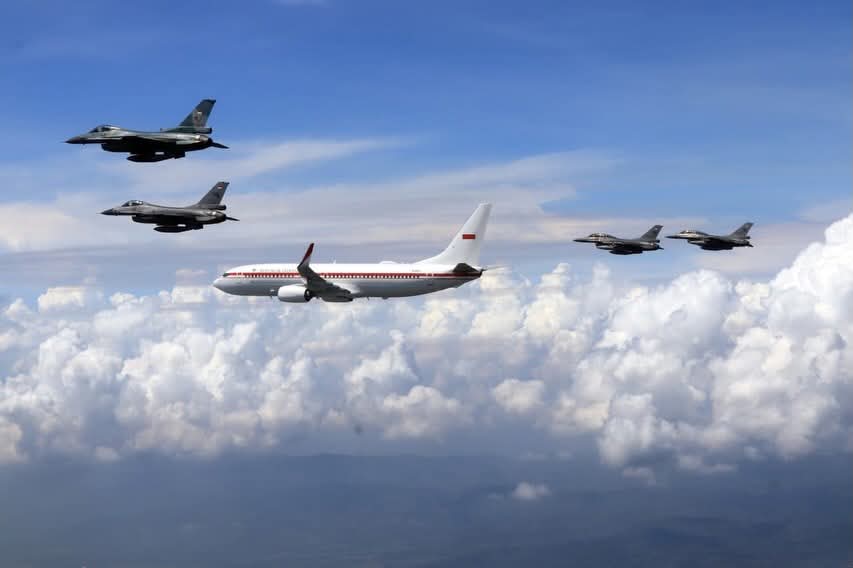Dalam penerbangan tersebut, pesawat kepresidenan mendapat pengawalan empat pesawat tempur F-16 Fighting Falcon dan dua pesawat KAI T-50 Golden Eagle. Momentum pengawalan ini merupakan bagian dari rangkaian peringatan Hari Ulang Tahun ke-80 TNI AU.