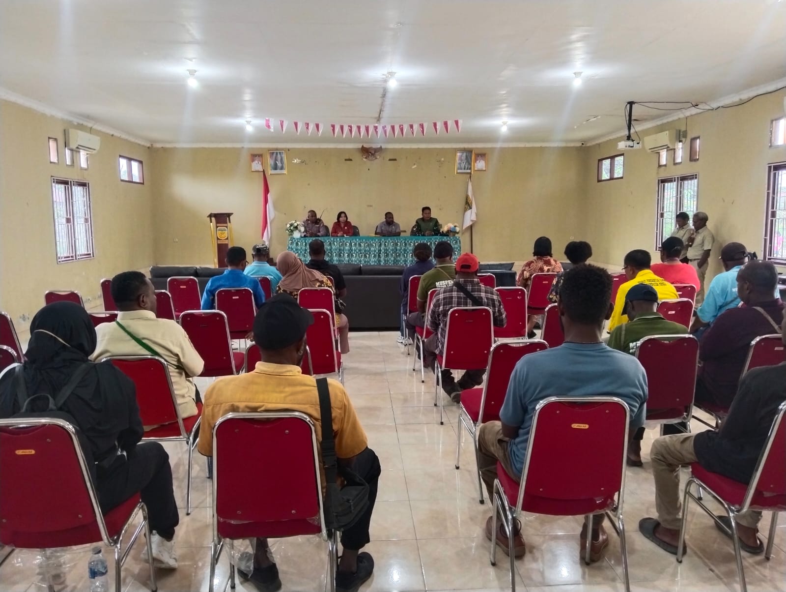 Timika, okebung99.com – Bertempat di Kantor Distrik Kuala Kencana, Danramil 1710-03/Kuala Kencana Kapten Inf Agustinus Samba Palangiran menghadiri acara tatap muka bersama pejabat baru dilingkup Distrik Kuala Kenacana sekaligus perkenalan bersama tokoh masyarakat, agama, adat dan tokoh pemuda dalam rangka komunikasi sosial di wilayah Koramil 1710-03/Kuala Kencana, Sabtu (11/04/2026).