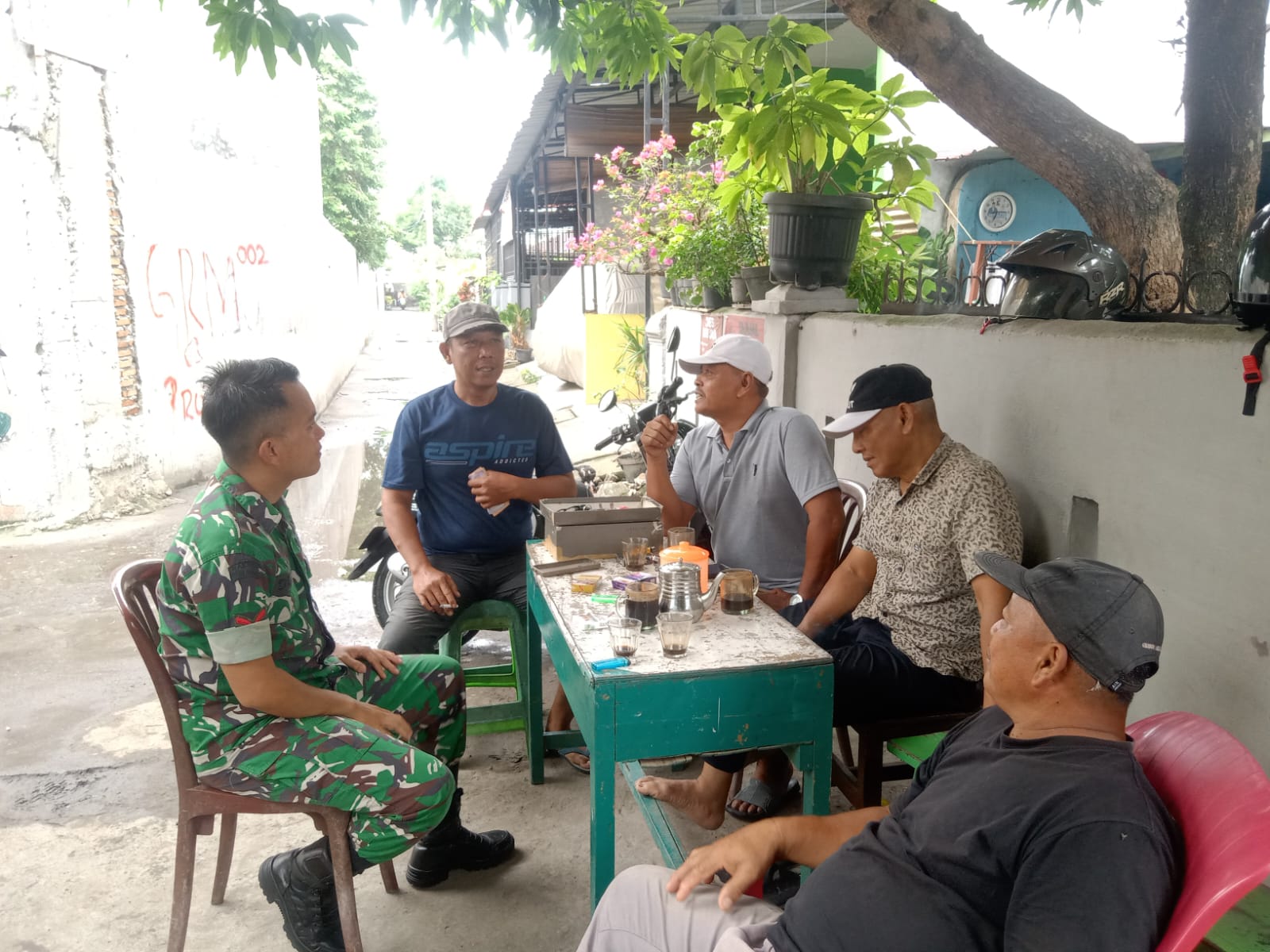 Medan – Kopda Dedi Haris Babinsa Koramil 0201-07/MT melaksanakan Komsos(Komunikasi Sosial) dan silaturrahmi dengan perangkat kelurahan dan warga, Selasa (14-04-2026)