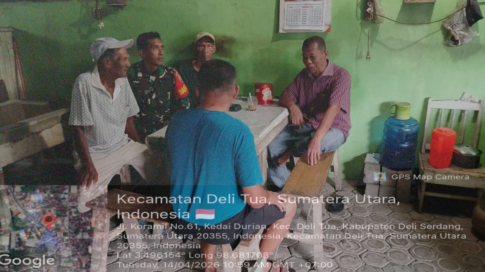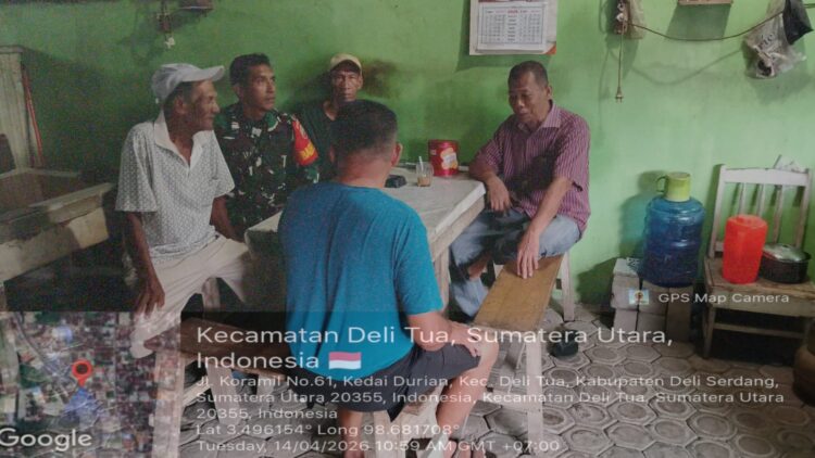 Deli Tua – Babinsa Koramil 0201-15/DT Serka M.Amin melaksanakan komunikasi sosial(Komsos) bersama masyarakat desa dengan tujuan menciptakan kedekatan kepada warga binaan Selasa,14 April 2026.