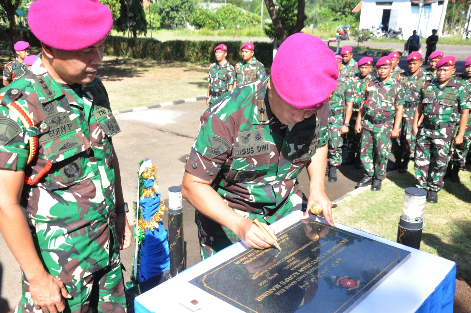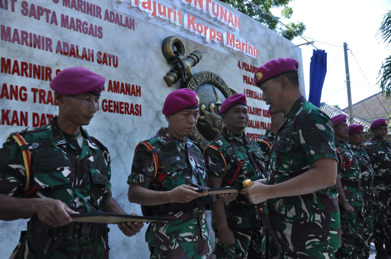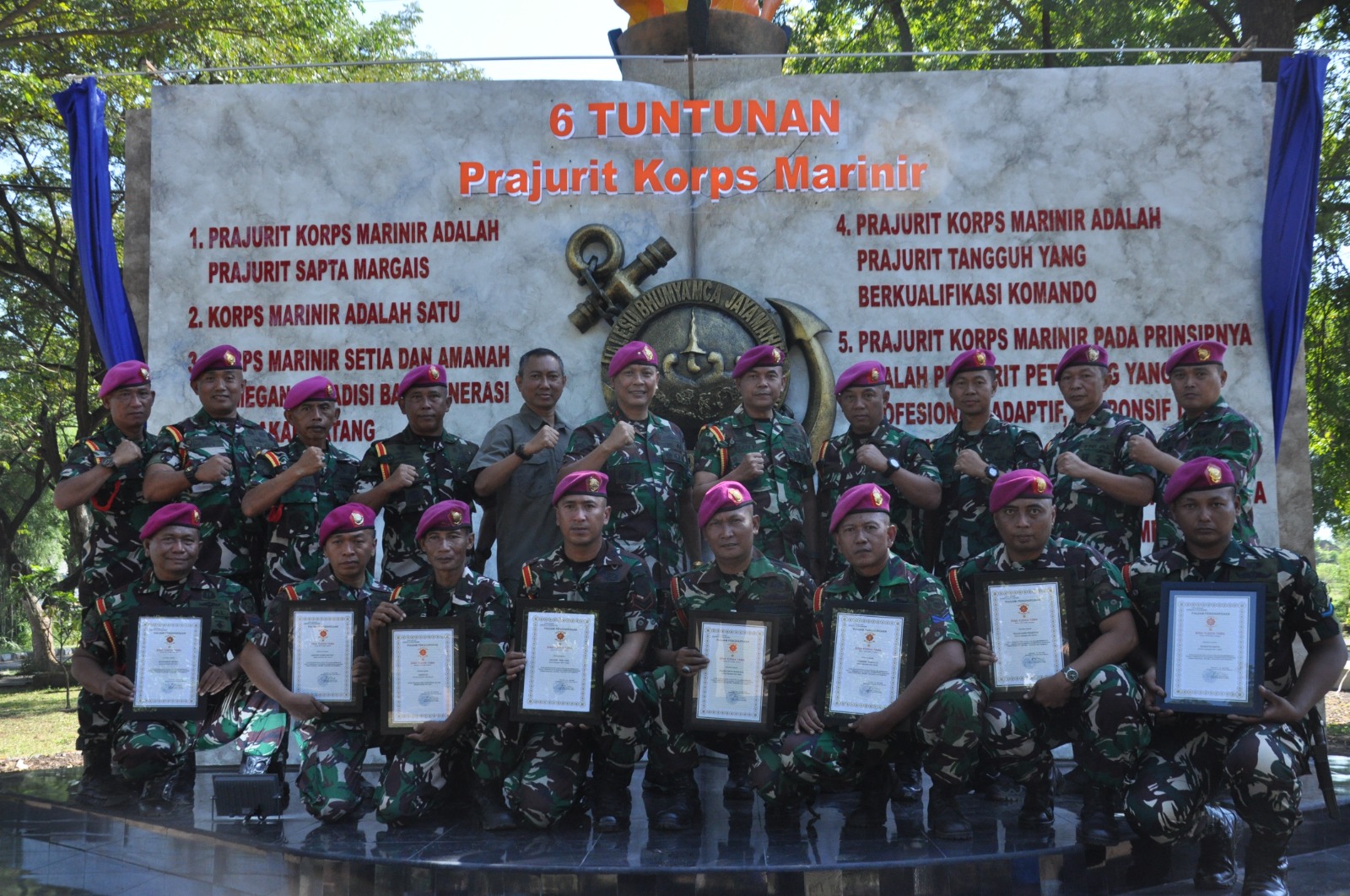 Kegiatan peresmian Monumen 6 Tuntunan Prajurit Korps Marinir ditandai dengan pemotongan pita, penandatanganan prasasti, serta foto bersama. Dalam sambutannya, Dankolatmar menyampaikan bahwa Monumen 6 Tuntunan Prajurit Korps Marinir menjadi simbol semangat, profesionalisme, dan kualitas prajurit Marinir serta memberikan Piagam Penghargaan dan Apresiasi dari Dankolatmar kepada 8 Prajurit yang dipimpin oleh Kapten Mar Siswoyo yang sehari-hari menjabat Wadan Denma Kolatmar.