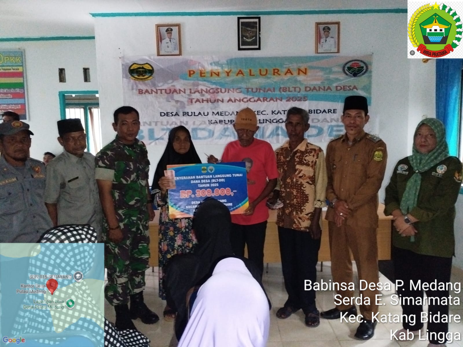 Kegiatan penyaluran BLT tersebut diselenggarakan oleh Pemerintah Desa Pulau Medang dan berlangsung dengan tertib serta lancar. Dalam kesempatan itu, sebanyak 11 Kepala Keluarga (KK) menerima bantuan dengan nominal Rp 300.000 per bulan. Kehadiran Babinsa tidak hanya sebagai undangan, tetapi juga sebagai bentuk pengawasan langsung guna menjamin transparansi dan akuntabilitas dalam proses distribusi bantuan kepada masyarakat.