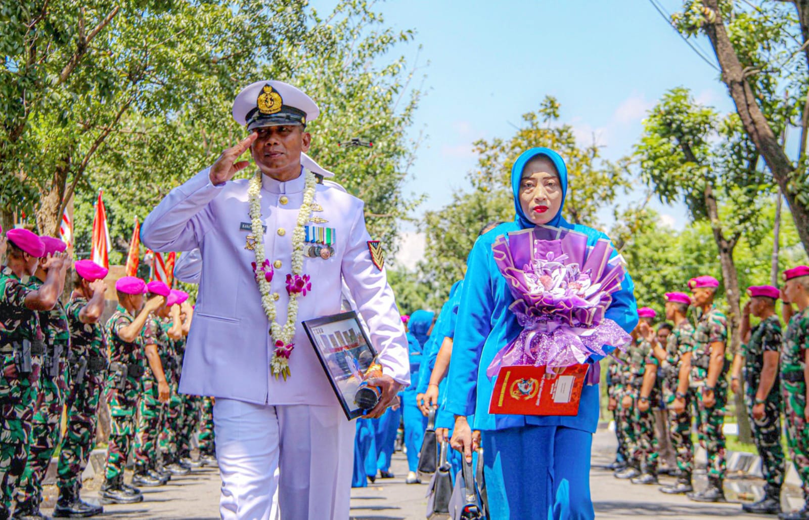 TNI Angkatan Laut, Dispen Kormar (Sidoarjo) Komandan Batalyon Infanteri 3 Marinir Letkol Marinir Iskandar Muda menyematkan pangkat baru dan melepas purna tugas prajurit Hiu Petarung di Lapangan Apel Kesatrian Marinir R. Suhadi, Gedangan, Sidoarjo, Jawa Timur. Selasa (14/04/2026).