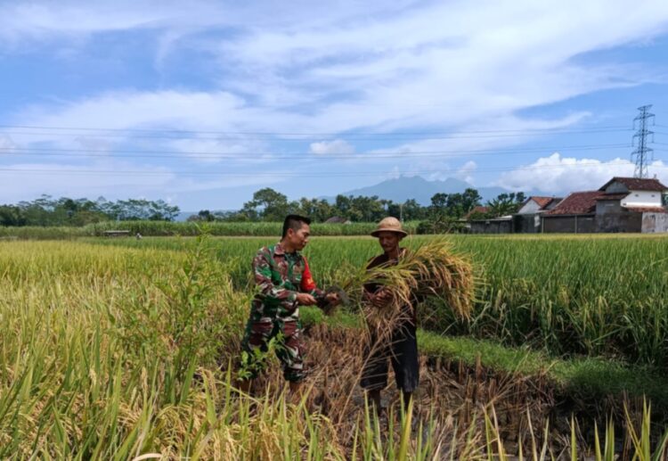 Tulungagung – Pagi baru saja beranjak siang ketika matahari mulai terasa menyengat di hamparan sawah Desa Pojok, Kecamatan Ngantru, Kabupaten Tulungagung, Selasa (14/6/2026). Di tengah bulir padi yang menguning dan siap dipanen, tampak sosok berseragam loreng menyatu dengan para petani. Ia bukan sekadar datang untuk melihat, tetapi ikut bekerja memotong padi, mengikat, lalu mengangkutnya ke pinggir pematang.