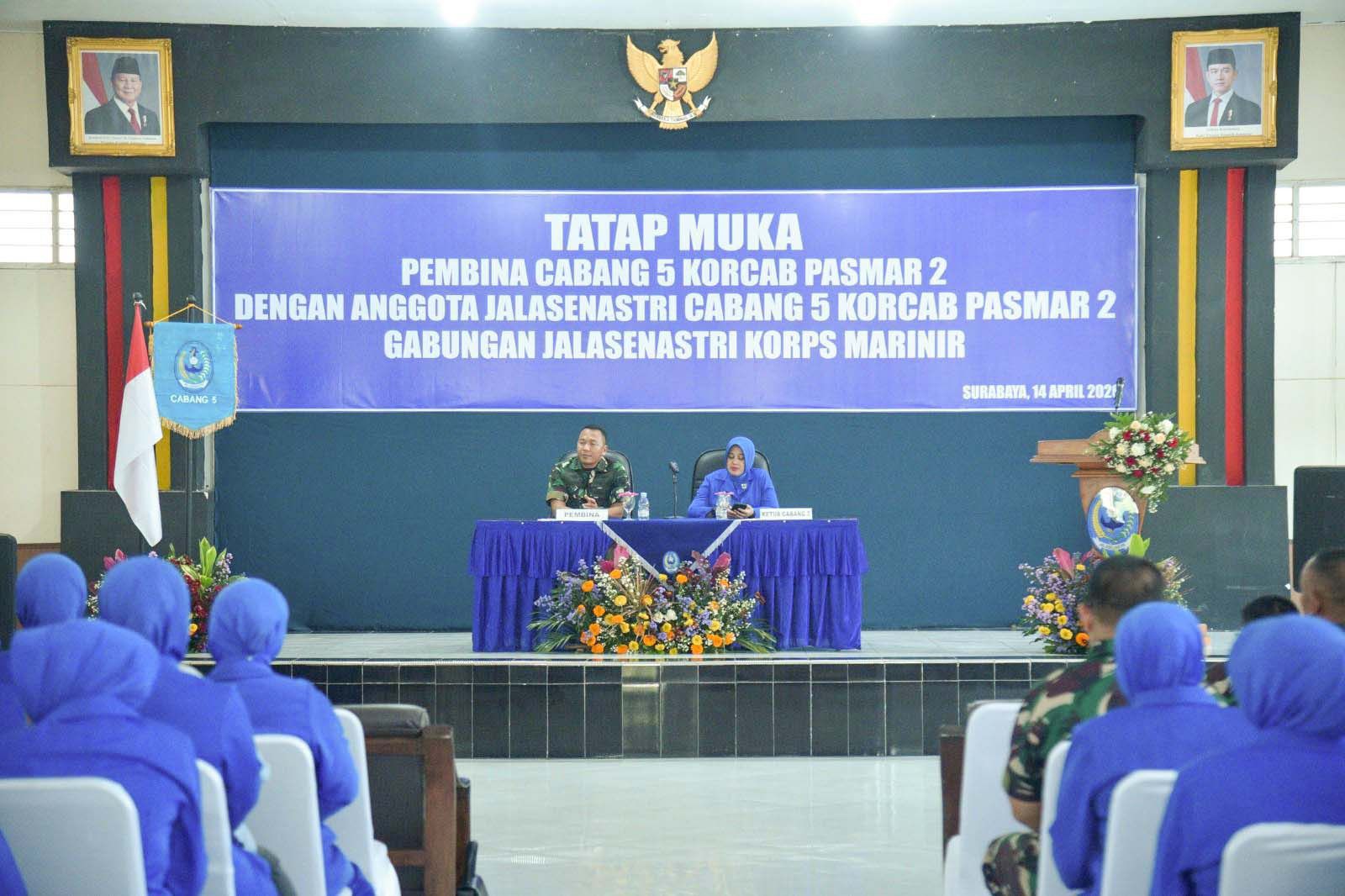 Dispen Kormar TNI Angkatan Laut (Surabaya). Komandan Resimen Kavaleri 2 Marinir (Danmenkav 2 Mar) Kolonel Marinir Dr. Iwan Permana, S.H., M.Tr.Opsla., selaku Pembina Jalasenastri Menkav 2 Mar didampingi Ketua Cabang 5 Korcab Pasmar 2 Gabungan Jalasenastri Korps Marinir Ny. Amita Iwan Permana mengadakan tatap muka kepada anggota Jalasenastri yang dilaksanakan di Bapra Yontankfib 2 Mar, Kesatrian Marinir Sutedi Senaputra, Karangpilang Surabaya. Selasa (14/04/2026).