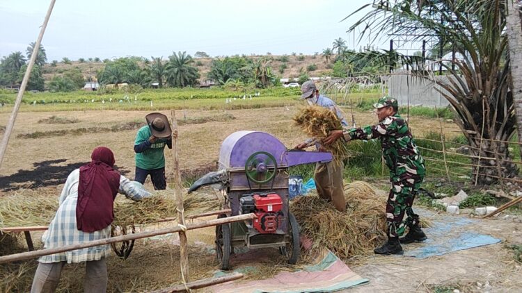 Di bawah terik matahari, Serka Alnusra tak segan mengoperasikan mesin perontok bersama para petani. Suasana kebersamaan pun tampak kental, diiringi semangat gotong royong yang menjadi ciri khas masyarakat pedesaan.