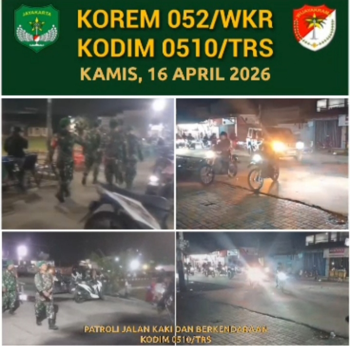 *Pelaksanaan kegiatan Patroli Jalan Kaki dan Berkendara Maung di wilayah Kodim 0510/Trs disaat warga sedang tertidur lelap ,sementara kita dari TNI AD tetap bekerja memberikan rasa aman dna nyaman ,”sebutnya .(red)