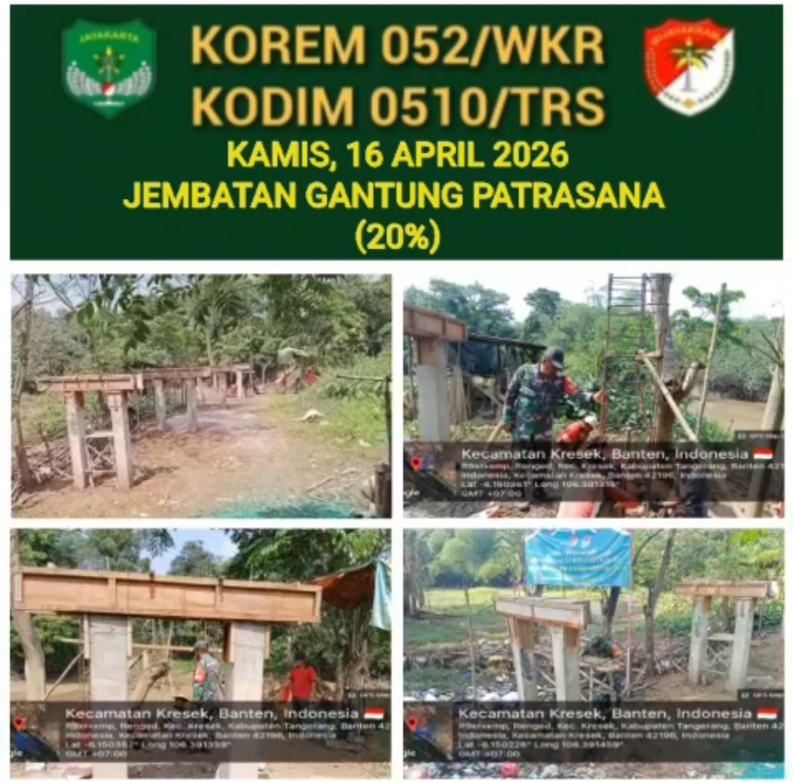 Dandim 0510/Tigaraksa melalui Pasiter menyampaikan bahwa jembatan dibangun untuk jalur evakuasi warga masyarakat pada saat terjadi banjir dari titik lokasi yang akan dibangun jembatan melambung sekitar 2,7 Km.