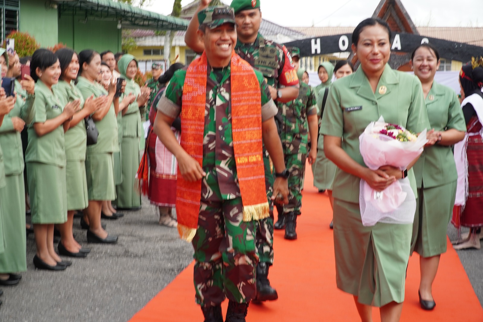 Tiba di Kodim 0210/TU, Danrem 023/KS dan rombongan langsung disambut oleh Dandim 0210/TU, Letkol Kav Ronald Tampubolon, SH, M.Han, beserta istri dengan pengalungan selendang dan pemberian hand bouquet serta tarian Tor-tor