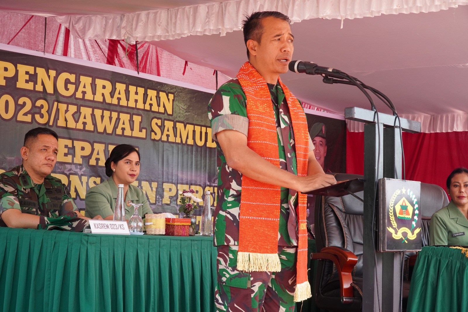 Kedatangan Danrem ke Kodim 0210/TU untuk melihat Prajurit dan Persit Kodim 0210/TU. Kami disini ingin mendengarkan dan Arahan Bapak Danrem 023/KS, ucap Dandim