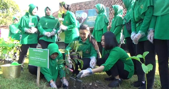Ibu-ibu Persit dengan baju khasnya hijau ini, langsung menanam ratusan tanaman pohon keras,seperti matoa, alpukat dan