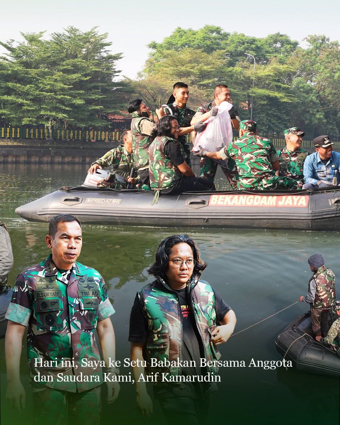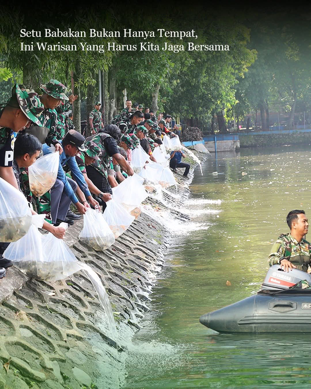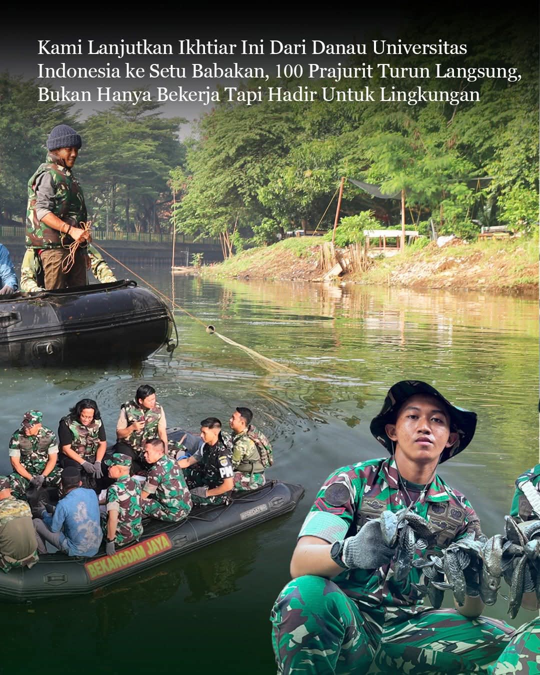 Dalam momentum Hari Bumi, Panglima Komando Daerah Militer Jaya/Jayakarta bersama influencer lingkungan Arif Kamarudin memimpin aksi bersih ikan sapu-sapu di kawasan Setu Babakan. Kegiatan ini merupakan lanjutan kedua dalam program Jaga Jakarta – Jaga Bumi, yang melibatkan sekitar 100 personel Koramil jajaran Kodim 0504/Jakarta Selatan, didampingi Danrem 051 dan seluruh jajaran terkait.