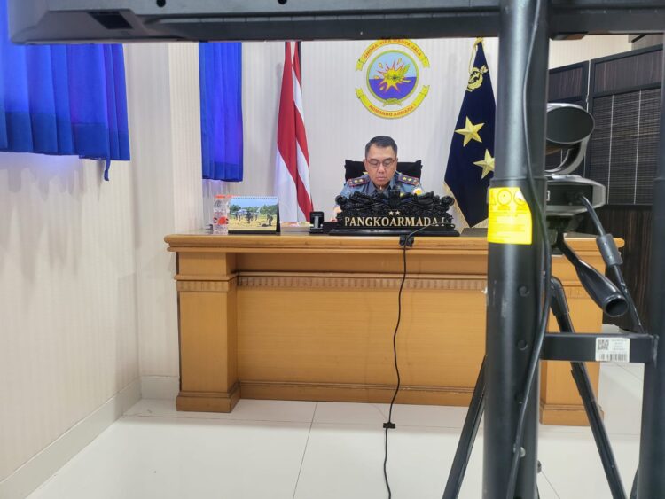 Panglima Komando Armada I (Pangkoarmada I) Laksamana Muda TNI Haris Bima Bayuseto, S.E., M.Si., M.Tr.Opsla., mengikuti pengarahan Asisten Operasi Kepala Staf Angkatan Laut (Asops Kasal) secara _video conference_ dari Ruang Kerja Pangkoarmada I Kolat Koarmada I Jakarta, pada Kamis (16/04/2026). Kegiatan tersebut merupakan bagian dari upaya TNI Angkatan Laut untuk memperkuat kesiapan operasional dan meningkatkan profesionalisme prajurit dalam menghadapi dinamika tugas di laut.