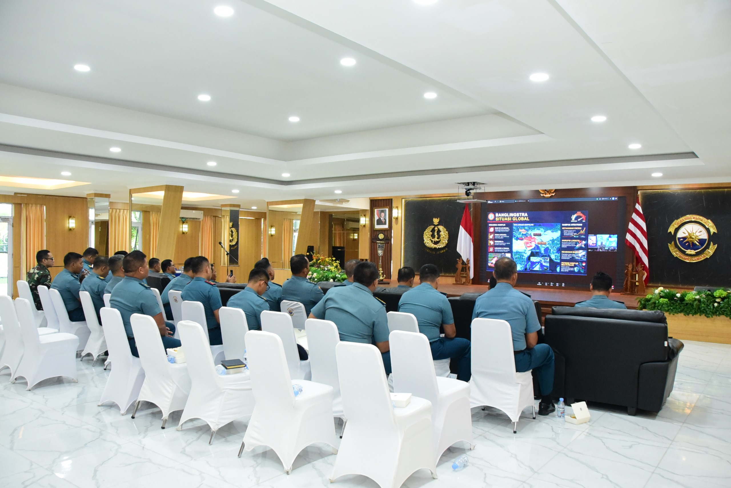 Secara terpisah, Kepala Staf Koarmada I (Kaskoarmada I) Laksamana Pertama TNI Arif Badrudin, Mmgt., Stud., bersama para Perwira Korps Pelaut Mako Koarmada I juga mengikuti pengarahan yang sama melalui _video conference_ dari Aula Yos Sudarso Mako Koarmada I. Pelaksanaan kegiatan di dua lokasi berbeda ini menunjukkan keseriusan jajaran Koarmada I dalam menerima arahan strategis dari pimpinan Asops Kasal.