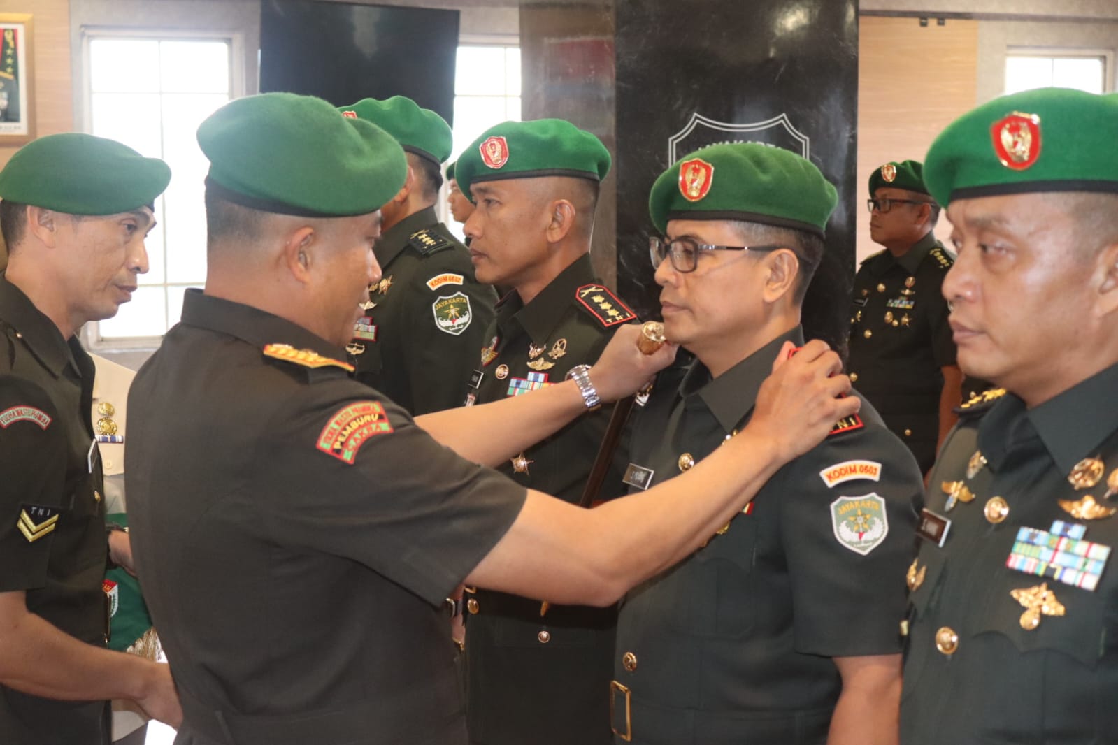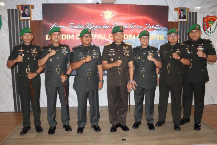 Komandan Korem 052/Wijayakrama, Brigjen TNI Faizal Rizal, S.I.P., memimpin acara serah terima jabatan (Sertijab) Dandim 0502/Jakarta Utara, Dandim 0503/Jakarta Barat dan penyerahan jabatan Kepala Seksi Personil Kasrem 052/Wijayakrama, bertempat di Makorem 052/Wijayakrama, Jalan Boulevard Diponegoro, Kecamatan Kelapa Dua, Kabupaten Tangerang, Sabtu (18/4/2026).