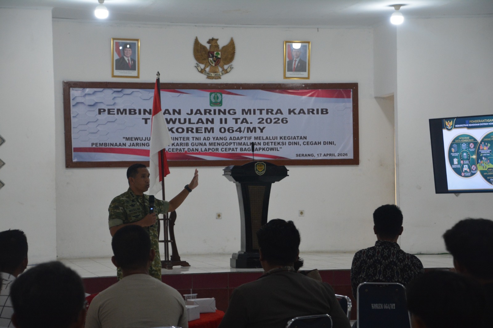 Korem 064/Maulana Yusuf menggelar pembinaan jaring Mitra Karib TA 2026 di Aula Makorem 064/MY, Jumat (17/4/2026).