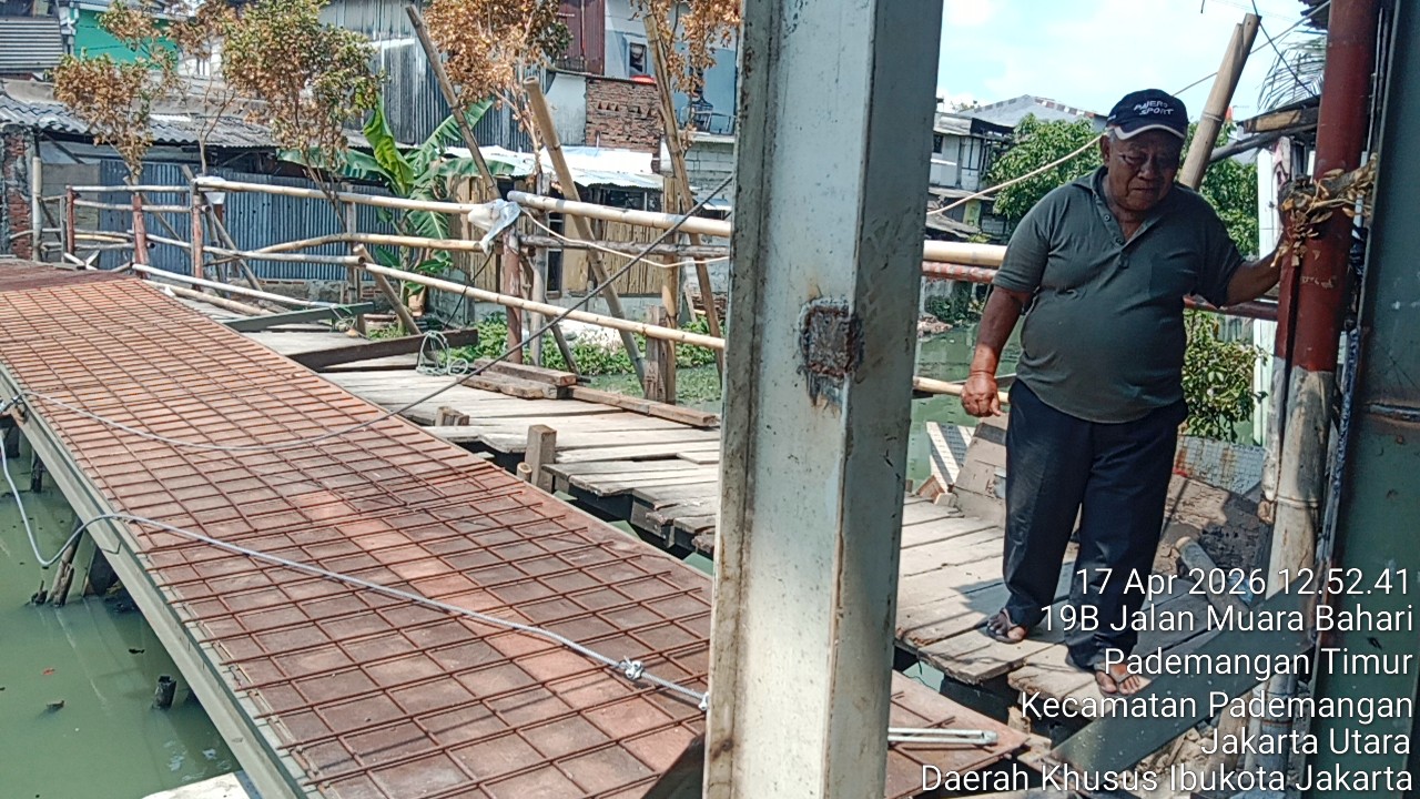 Untuk saat ini ,Jumat 17 April 2026,perkembangan pembangun Jembatan Garuda di wilayah Kodim 0502/JU Jajaran Korem 052/Wkr berlokasi di Kali Sentiong,di sisi timur Jl. Pesanggrahan Rw 001 Kel. Sunter Agung Kec.Tanjung Priok dan sisi barat RW 012 Kelurahan Pademangan Timur Kec Pademangan Kota Adm Jakarta Utara.