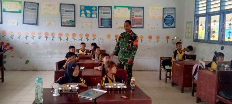 BABINSA MELAKSANAKAN KEGIATAN PENDAMPINGAN PEMBAGIAN PROGRAM MBG DI SEKOLAH YANG BERADA DI DESA BINAAN