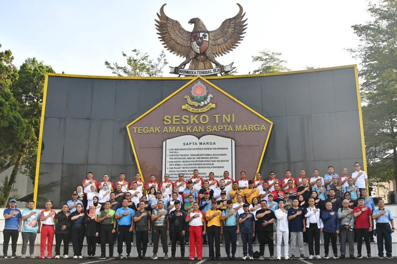 Bandung. Komandan Kodiklatad Letjen TNI Dr. Mohamad Hasan, S.H., M.H., menghadiri kegiatan olahraga bersama dalam rangka memperingati HUT ke-52 Sesko TNI Tahun 2026 yang dipimpin oleh Komandan Sesko TNI Marsdya TNI Arief Widianto, S.A.B., M.Tr.(Han), CHRMP., bertempat di Komplek Sesko TNI, Jumat (10/4/2026).