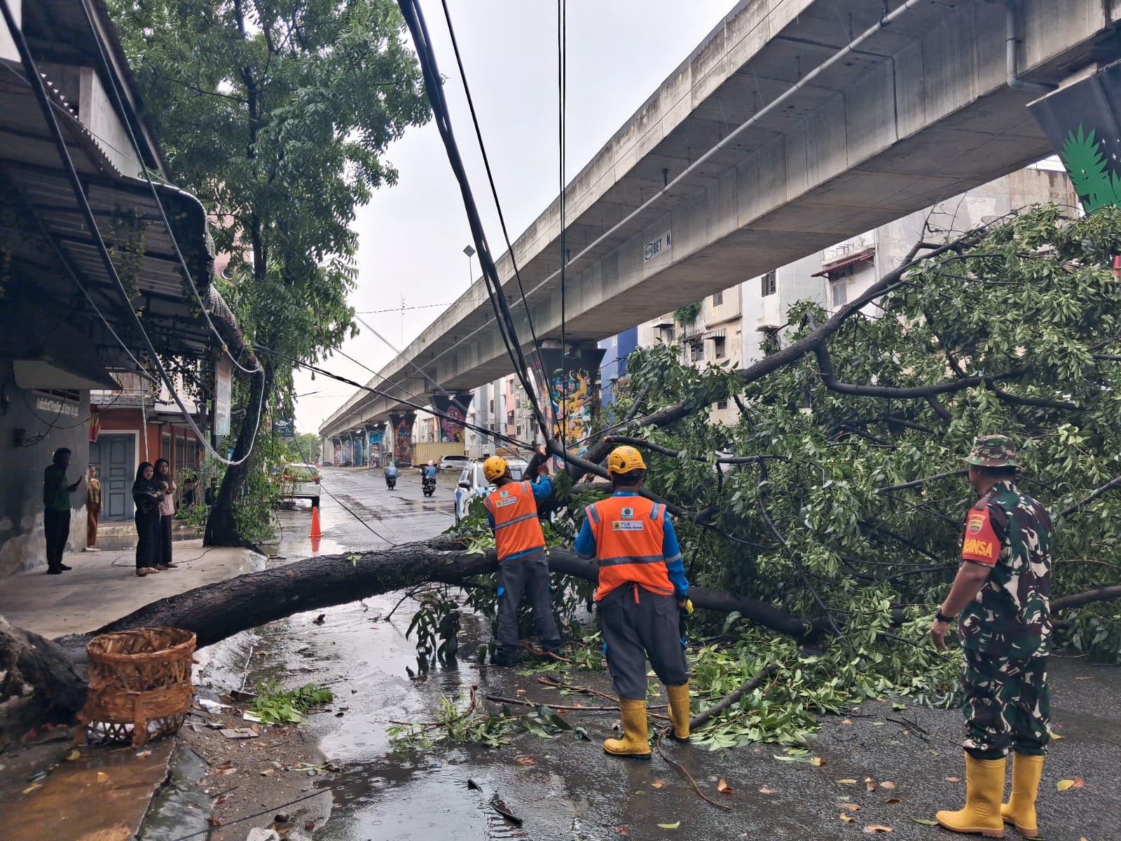 “Pohon yang tumbang dan menutupi jalan tersebut terjadi pada hari Minggu 19 April 2026 Pukul 13.00 Wib setelah sebagian wilayah Kecamatan Medan Maimun diguyur hujan dan disertai angin kencang, beruntung saat itu kondisi jalan sepi sehingga tidak ada korban,” ucap Serka Naris Eko susai mengatasi pohon tumbang tersebut.