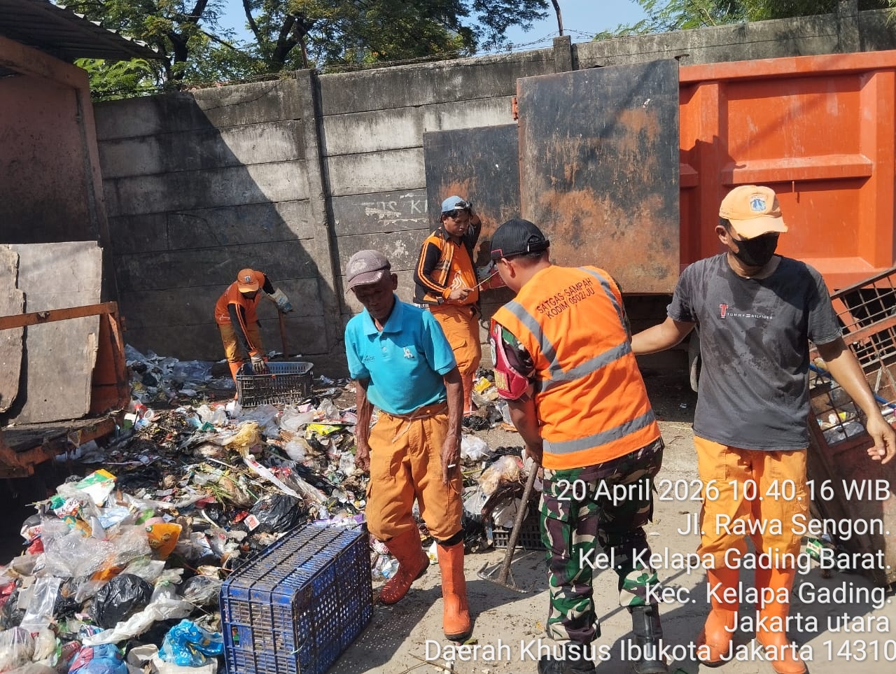 Hari ini Senin 20 April 2026,pagi Satgas Grebek Sampah Kodim 0502/JU kembali melakukan aksi bersih-bersih sampah di TPSS (tempat penampungan sampah sementara) Jl. Rawa Sengon RT. 001/22 Kel. Kelapa Gading Barat Kec. Kelapa Gading Kota Adm. Jakarta Utara.