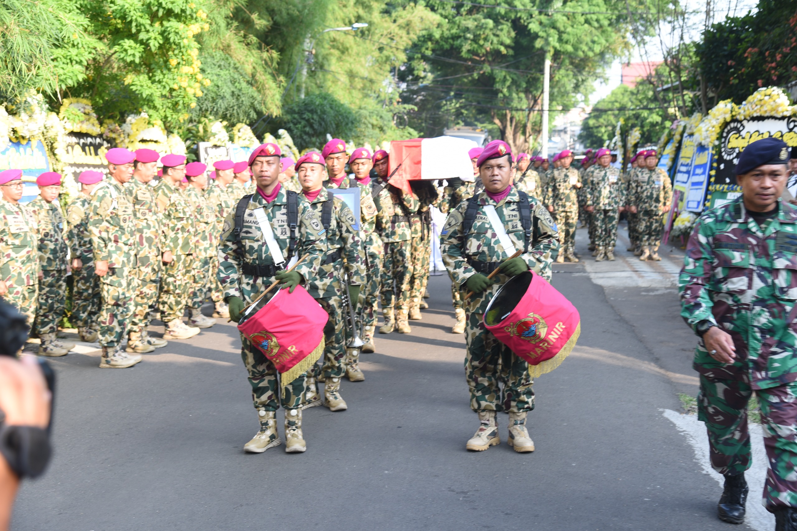 Gema doa dan sholawat mengiringi langkah para prajurit pengusung jenazah saat membawa peti dari rumah duka menuju masjid, menunjukkan betapa besarnya rasa kehilangan yang dirasakan oleh seluruh jajaran Korps Marinir TNI Angkatan Laut atas berpulangnya sang jenderal bintang tiga tersebut.