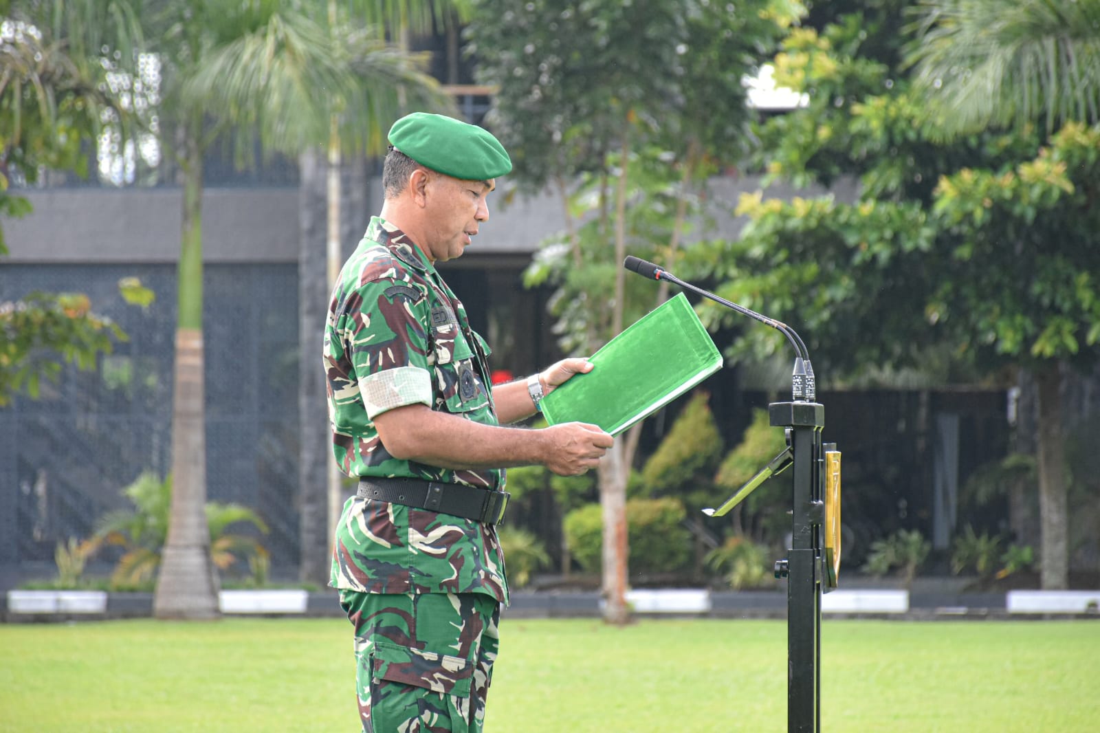 Dalam upacara tersebut, Kolonel Inf Edyson Lambe membacakan amanat Panglima TNI Jenderal TNI Agus Subiyanto, S.E., M.Si., yang menekankan pentingnya meningkatkan keimanan dan ketakwaan kepada Tuhan Yang Maha Esa, serta memegang teguh Sapta Marga, Sumpah Prajurit, dan 8 Wajib TNI.
