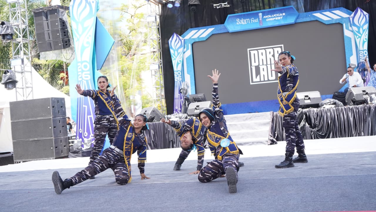Opening Ceremony Salam Fest X Moluccas Digifest Tahun 2026 berlangsung meriah di Taman Pattimura Park, menjadi momen istimewa bagi anggota Korps Wanita TNI Angkatan Laut (Kowal) di Komando Daerah TNl Angkatan Laut (Kodaeral) lX dalam menunjukkan eksistensi dan perannya di tengah masyarakat pada Sabtu pagi (18/4/2026).