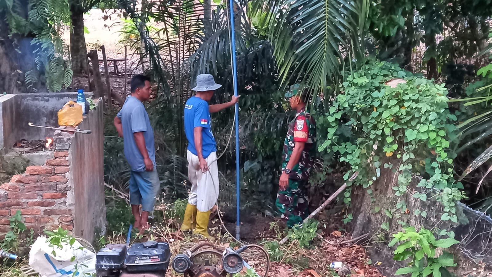 Aceh Timur – Serda Jumadika, Babinsa Koramil 16/Peudawa, Kodim 0104/Aceh Timur, melaksanakan pendampingan kepada warga binaan dalam kegiatan pembuatan sumur bor di lingkungan permukiman Desa Gampong Keude, Kecamatan Peudawa, Kabupaten Aceh Timur.Selasa(21/04/2026).