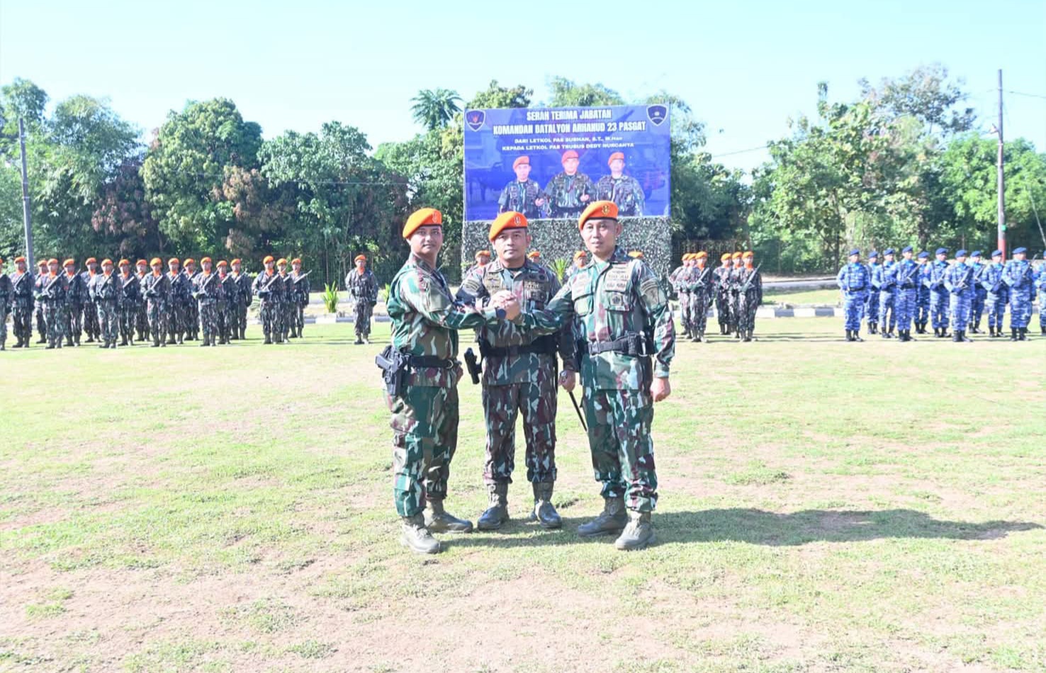 MAKASSAR – Komandan Resimen Arhanud 2 Pasgat Kolonel Pas Dadang Hermawan, M. Si. (Han) didampingi Ketua PIA Ardhdhya Garini 02-3 Resimen Arhanud 2 Pasgat Ny. Yessi Dadang Hermawan memimpin langsung upacara Serah Terima Jabatan (Sertijab) Komandan Batalyon Arhanud 23 Resimen 2 Pasgat yang digelar di Lapangan Apel Batalyon Arhanud 23 Pasgat Makassar, Kamis (16/04/2026).