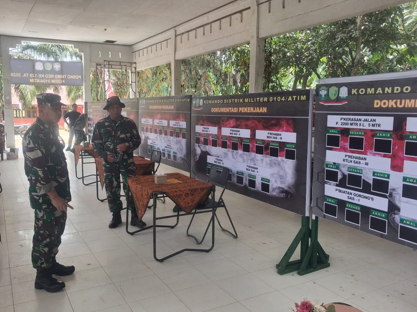 Dengan langkah tegas, Dansatgas menyusuri setiap sudut posko, memastikan kesiapan mulai dari papan data kegiatan, administrasi, hingga sarana pendukung lainnya yang menjadi pusat kendali operasional TMMD.