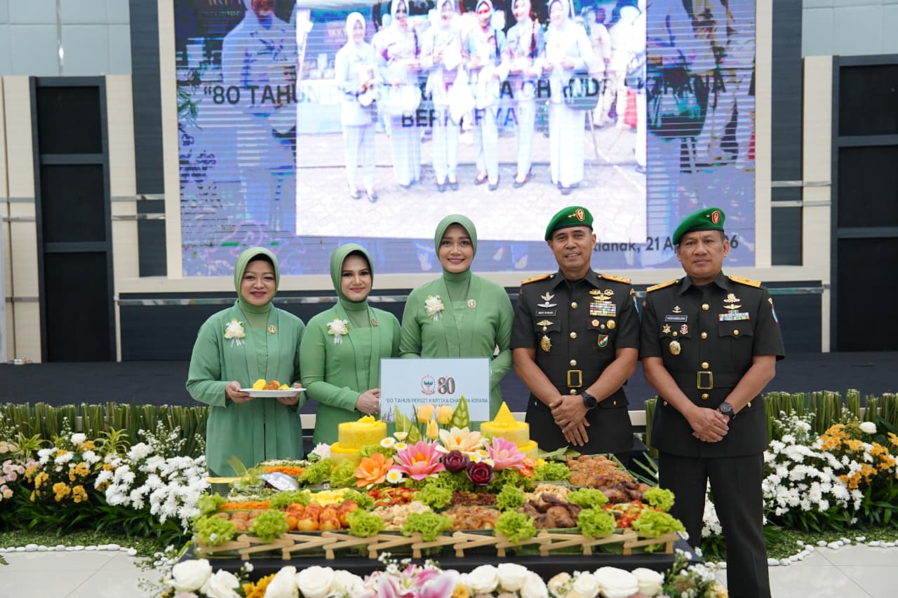 Peringatan hari jadi organisasi istri prajurit TNI AD kali ini mengusung tema sentral: “80 Tahun Persit Kartika Chandra Kirana Berkarya”. Acara syukuran ini ditandai dengan prosesi pemotongan tumpeng dan dihadiri oleh jajaran pejabat utama Kodam XII/Tpr serta pengurus Persit KCK PD XII/Tanjungpura.