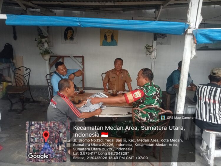 Seperti yang dilakukan oleh Personel Koramil 0201-04/MK Babinsa Kelurahan Tegal Sari III Sertu Ridwan Naim menjalin keakraban serta kebersamaan yang baik dengan warga binaan di Jl.Bromo lorong amal Kel. Tegal Sari III, Kec. Medan Area, selasa (21/04/2026).