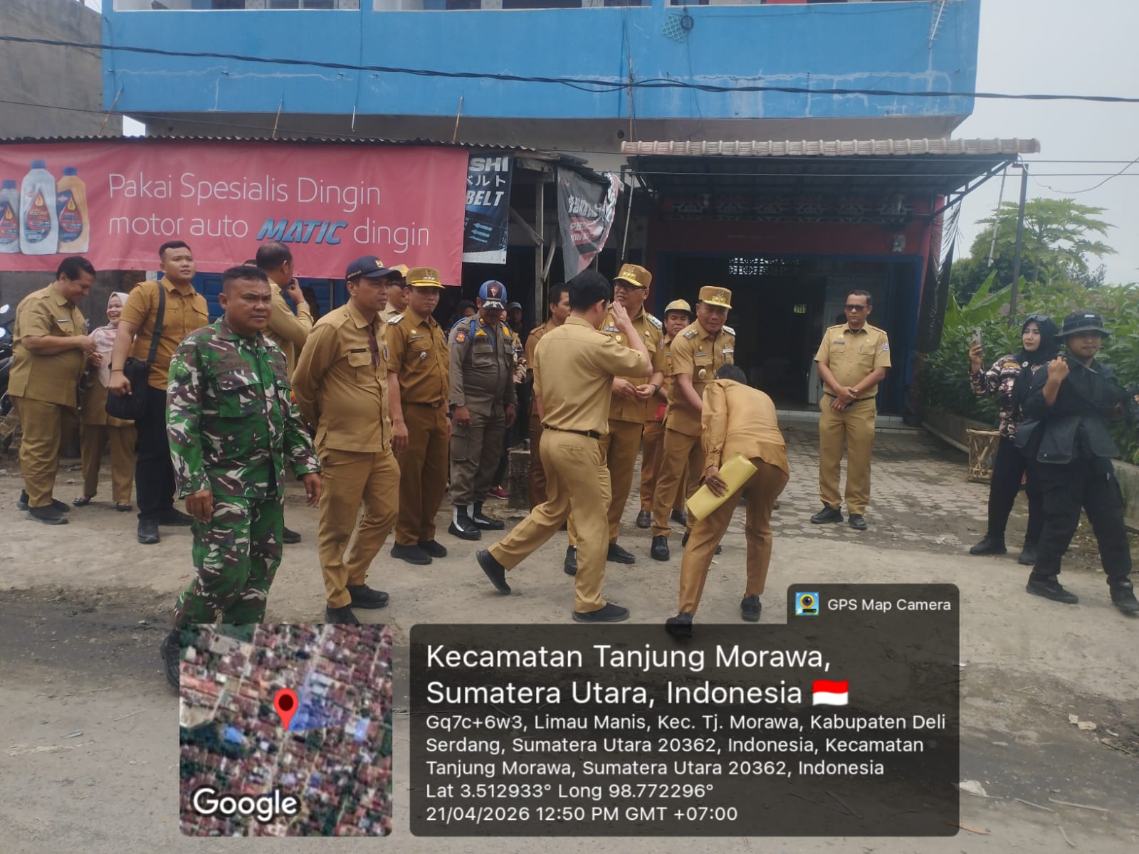 Tanjung Morawa,Babinsa Koramil 0201-16/TM,Sertu D.S.Barus Aktif Memonitoring kegiatan Bupati dan Wakil Bupati Deli Serdang dalam peninjauan yang akan dilakukan Perbaikan Jalan Besar Desa Limau Manis Kecamatan Tanjung Morawa untuk memastikan pekerjaan sesuai dengan rencana,Selasa 21 April 2026.