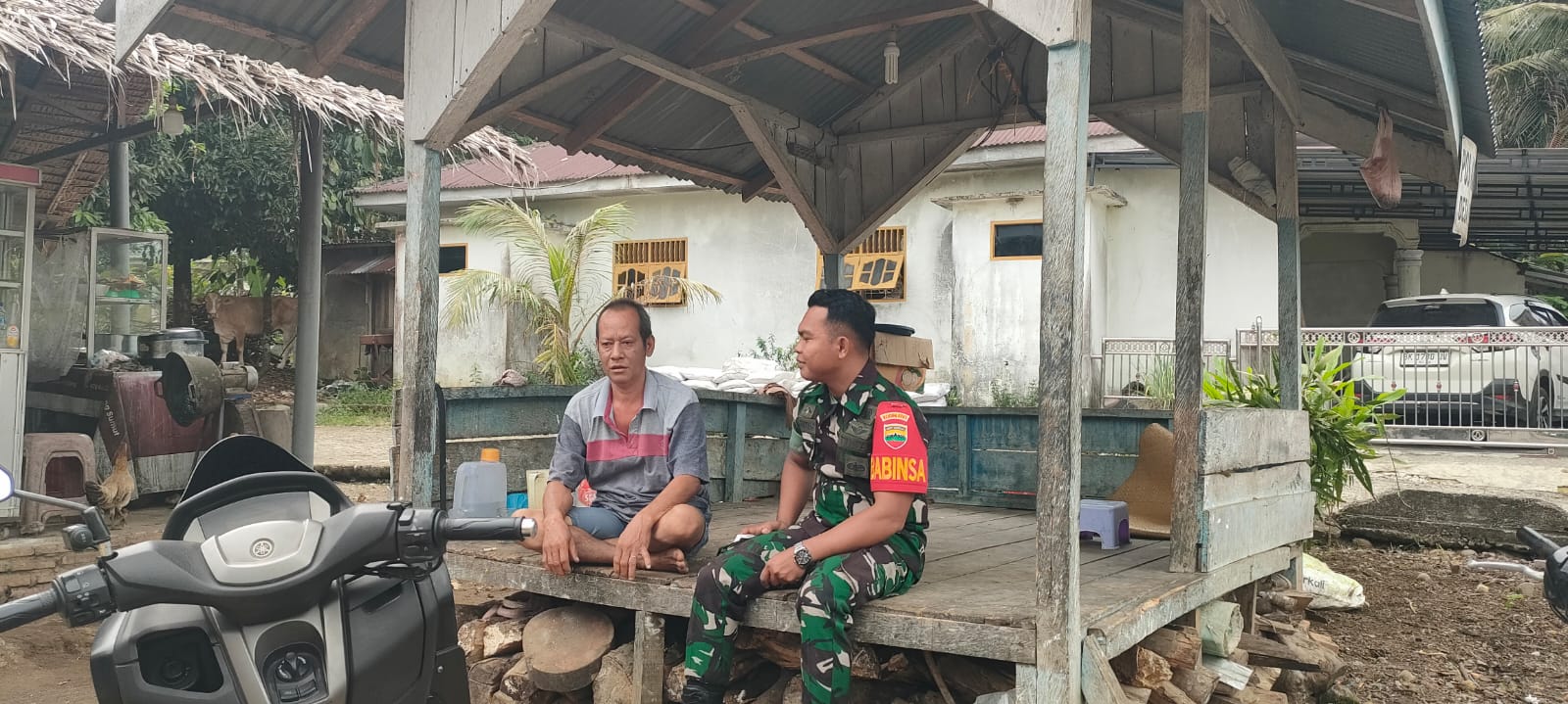 Namo Rambe – Demi mewujudkan wilayah yang aman dan kondusif Babinsa Koramil 14/ PB Kodim 0201/ Medan Sertu Ade Irfan Ginting melaksanakan Komsos dengan warga binaan di sebuah warung kopi milik warga binaan Desa Bekukul kecamatan Namo rambe Kabupaten Deli Serdang, Selasa (21/04/2025).