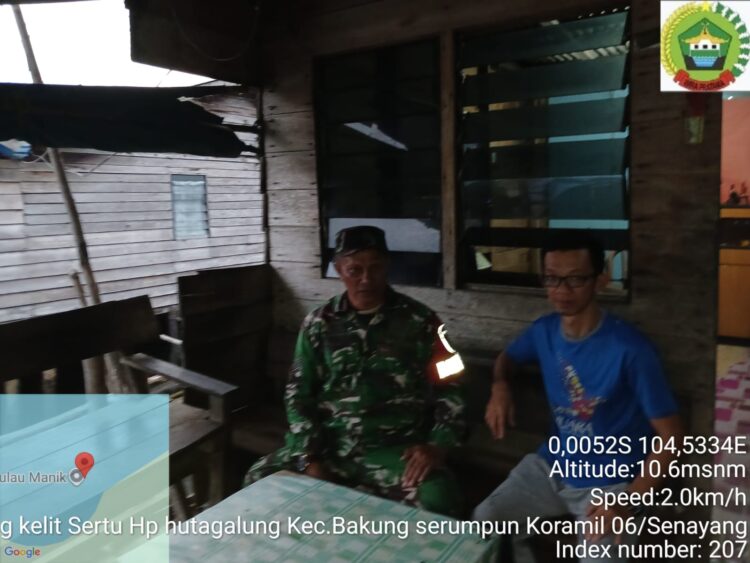 Bakung Serumpun, Lingga – Babinsa Desa Tanjung Kelit, Kecamatan Bakung Serumpun, Kabupaten Lingga, Sertu HP Hutagalung, melaksanakan Komunikasi Sosial (Komsos) bersama Kepala Dusun III, Bapak Heri Secawar, di wilayah RT 02/RW 02. Kegiatan ini merupakan bagian dari pembinaan teritorial yang secara rutin dilaksanakan guna mempererat hubungan antara aparat kewilayahan dengan masyarakat serta sebagai sarana deteksi dini dan cegah dini terhadap potensi ancaman di wilayah binaan, khususnya terkait Kebakaran Hutan dan Lahan (Karhutla), Selasa (21/04/2026)