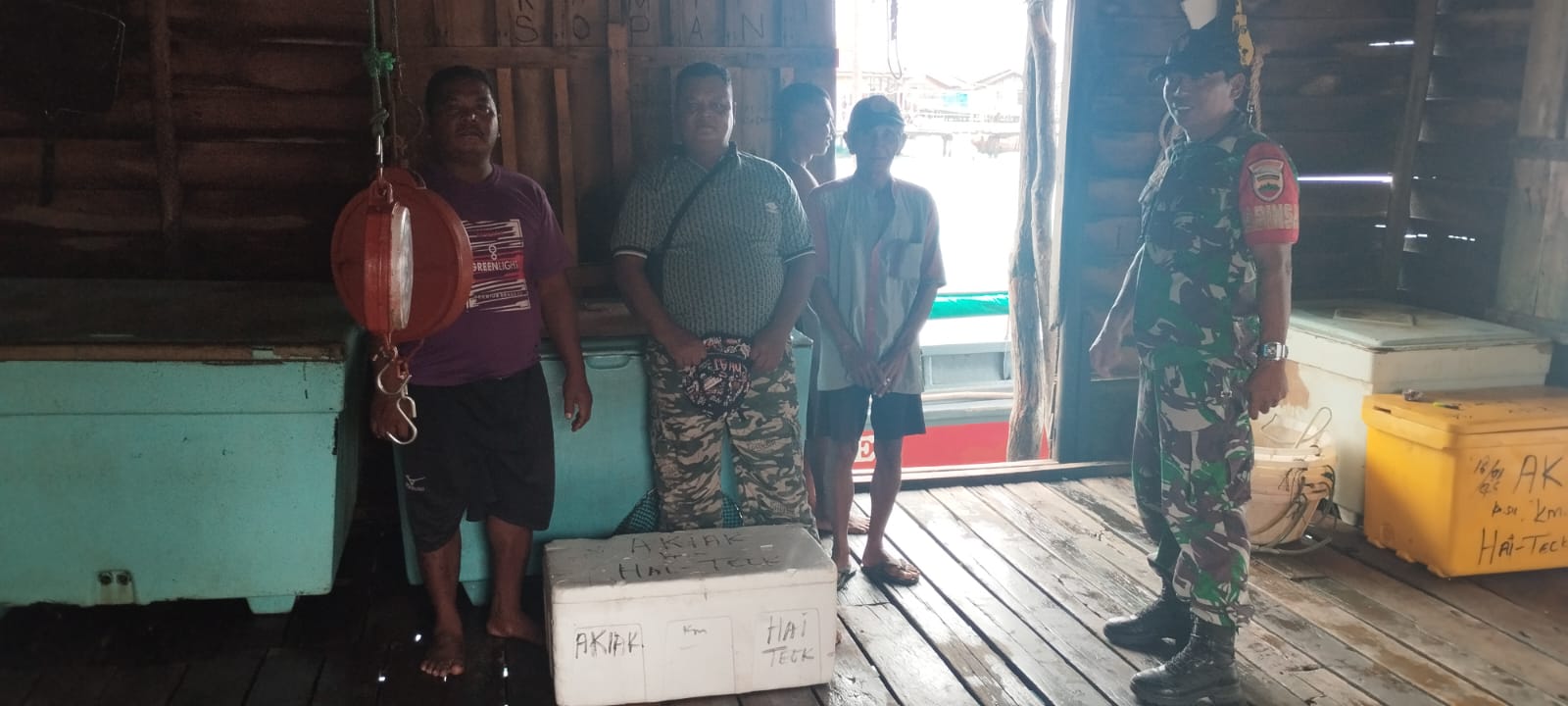 OKEBUNG | Babinsa Desa Pulau Medang, Kecamatan Katang Bidare, Kabupaten Lingga, Serda Erwin Simarmata, melaksanakan kegiatan Komunikasi Sosial (Komsos) bersama masyarakat pesisir di kediaman Bapak Akiak, yang merupakan penampung ikan hasil tangkapan nelayan setempat. Kegiatan tersebut berlangsung di gudang ikan milik Bapak Akiak dan turut dihadiri oleh kerani gudang Saudara Bogel serta salah satu pekerja, Saudara Tono. Komsos ini menjadi bagian dari upaya pembinaan teritorial guna mempererat hubungan antara TNI dan masyarakat serta memantau kondisi sosial ekonomi wilayah binaan.