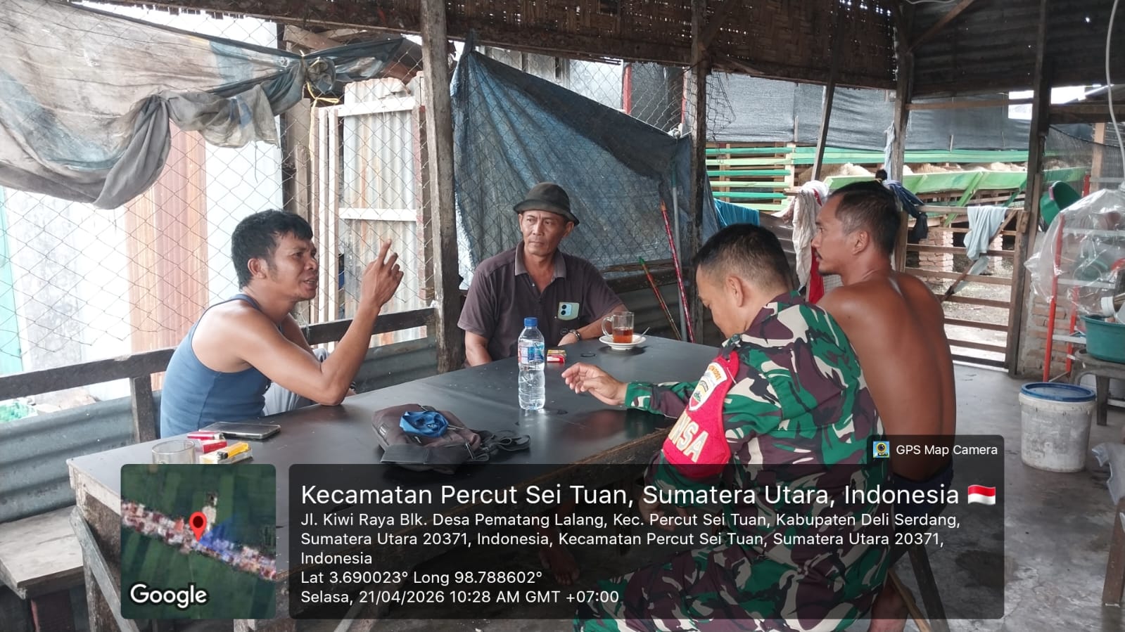 Dalam Rangka Menjalin hubungan yang lebih baik, Babinsa Koramil 0201-13/PST, bersama Kadus BPD bercengkrama bersama warga binaan. Hal tersebut di laksanakan di warung kopi milik Bapak Ahmad Lubis di Desa Pematang Lalang, Dusun 3, Kec Percut Sei Tuan. Kab Deli Serdang. Selasa ( 21/04/2026).