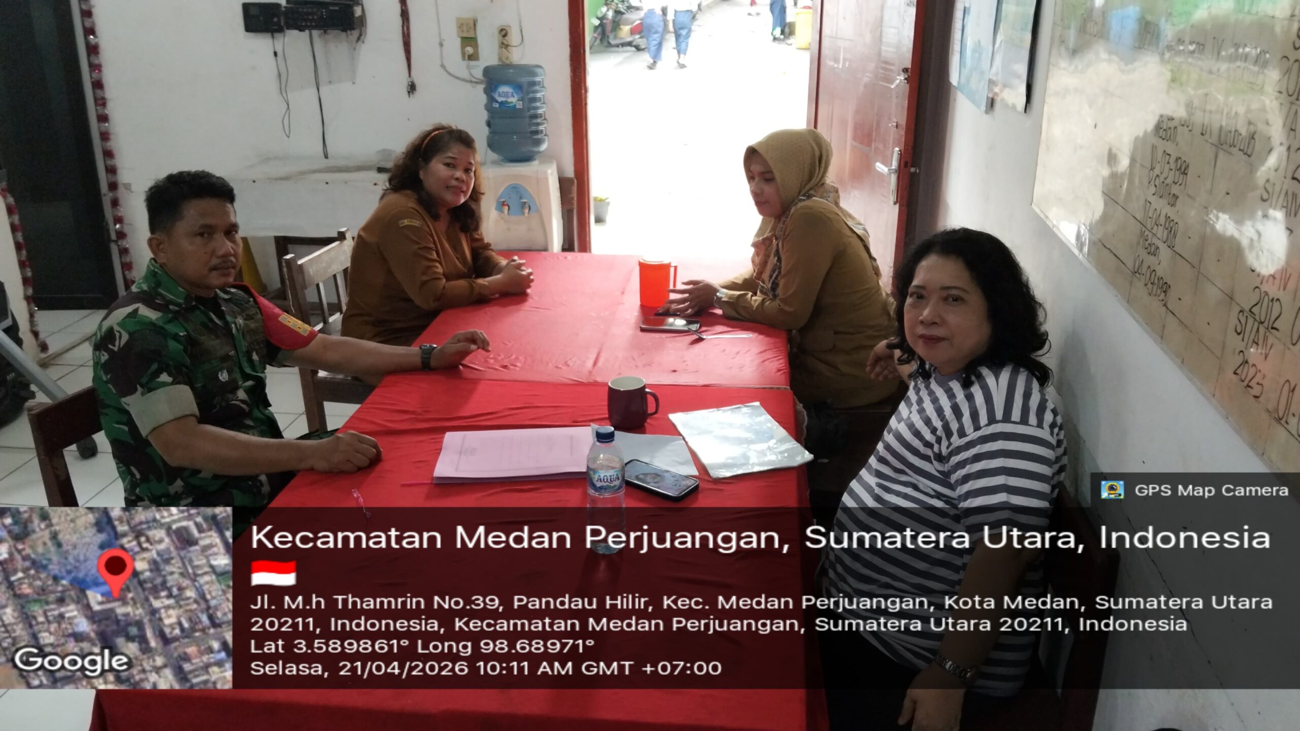 MEDAN KOTA – Anggota Koramil 0201-04/MK Babinsa Kelurahan Pusat pasar Sertu M. Panjaitan jalin komunikasi sosial dengan Kepala sekolah SD N.060801 bersama para guru diruangan rapat guru SD N.060801 Jln. Thamrin No.52 Kelurahan Pusat pasar Kecamatan Medan Kota.