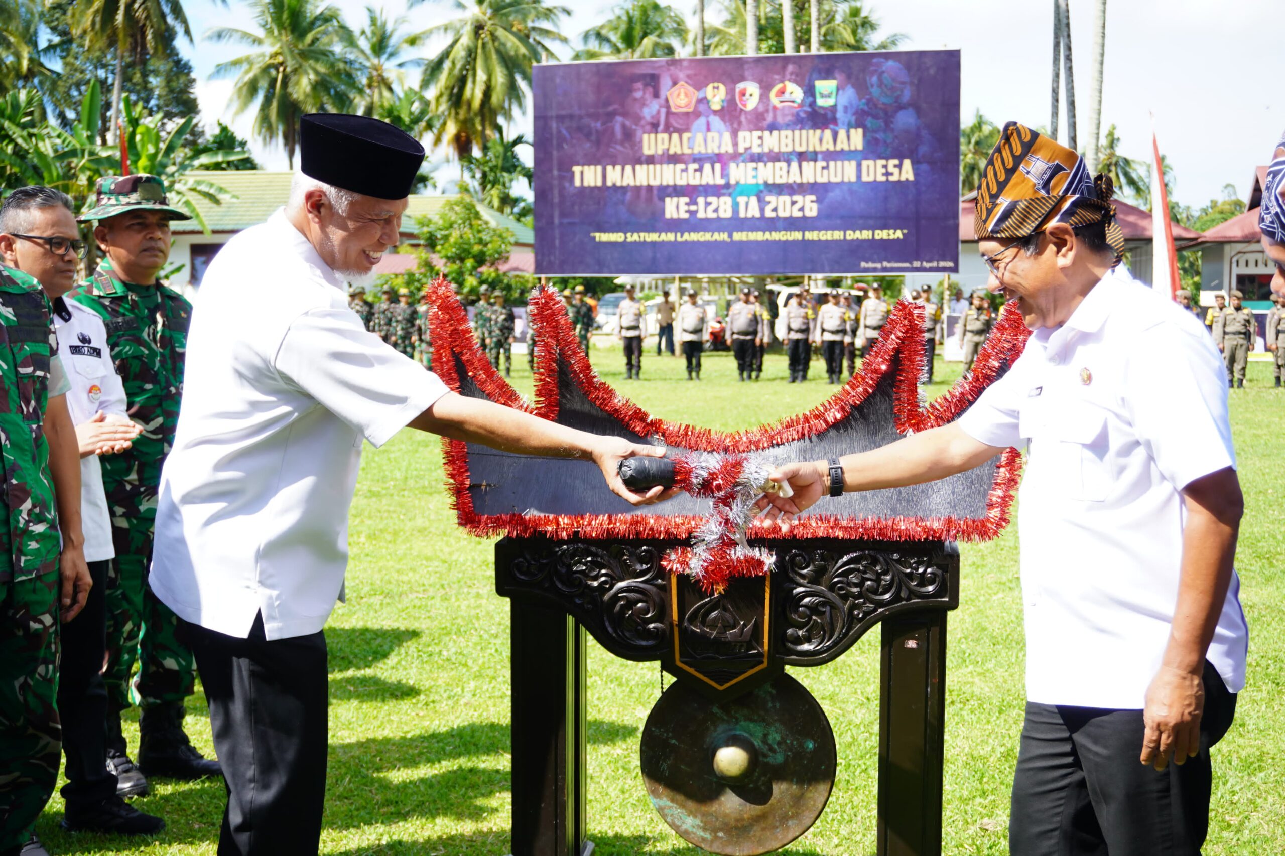 PADANG PARIAMAN, — Upacara Pembukaan TNI Manunggal Membangun Desa (TMMD) ke-128 Tahun 2026 yang digelar oleh Kodim 0308/Padang Pariaman resmi dibuka di Korong Balai Kamis, Nagari Batu Gadang Kuranji Hulu, Kecamatan Sungai Geringging, Rabu (22/04/2026). Kegiatan ini mengusung tema “Satukan Langkah Membangun Negeri dan Desa” dan dibuka langsung oleh Gubernur Sumatera Barat, Mahyeldi Ansharullah.