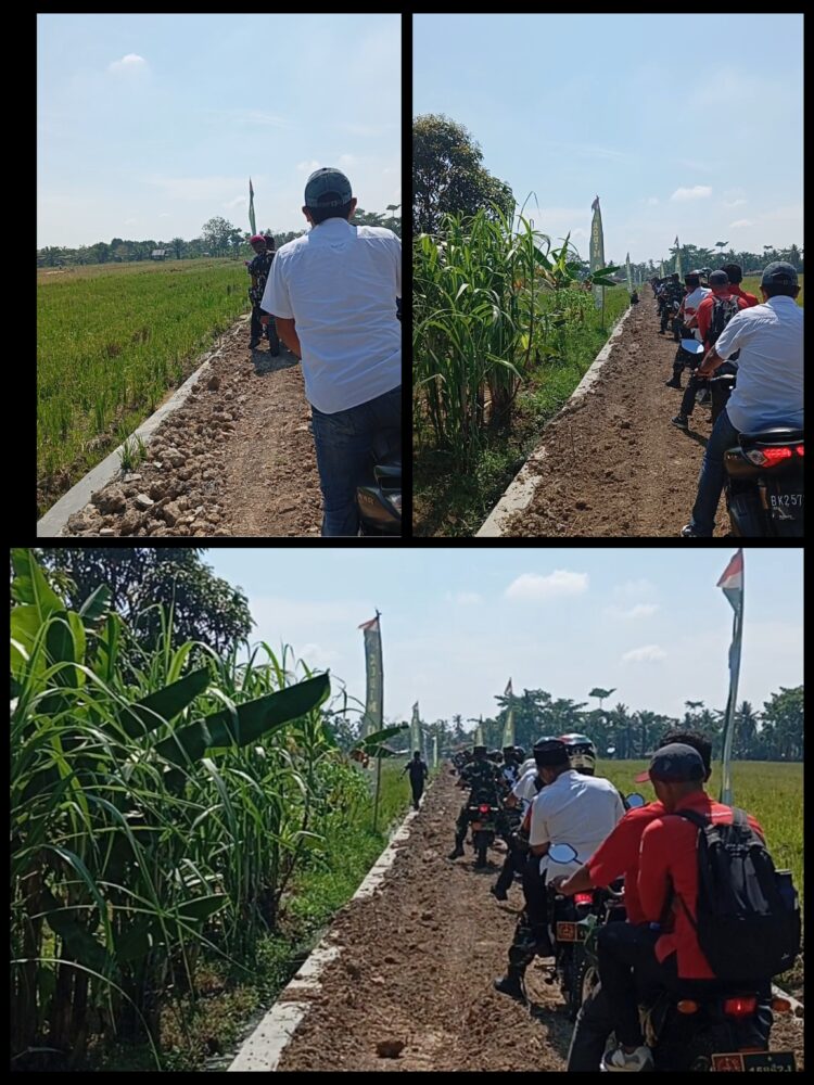 Dengan mengendarai sepeda motor kendaraan dinas (Randis) Babinsa Kodim 0203/Langkat, Wakil Bupati Langkat Tiorita Br Surbakti.SH bersama Dansatgas Letkol Inf Medwin Sangkakala.S.Sos. M.Han,serta rombongan unsur Forkopimda Kab.Langkat meninjau pembangunan sasaran fisik pengerasan dan pelebaran badan jalan .