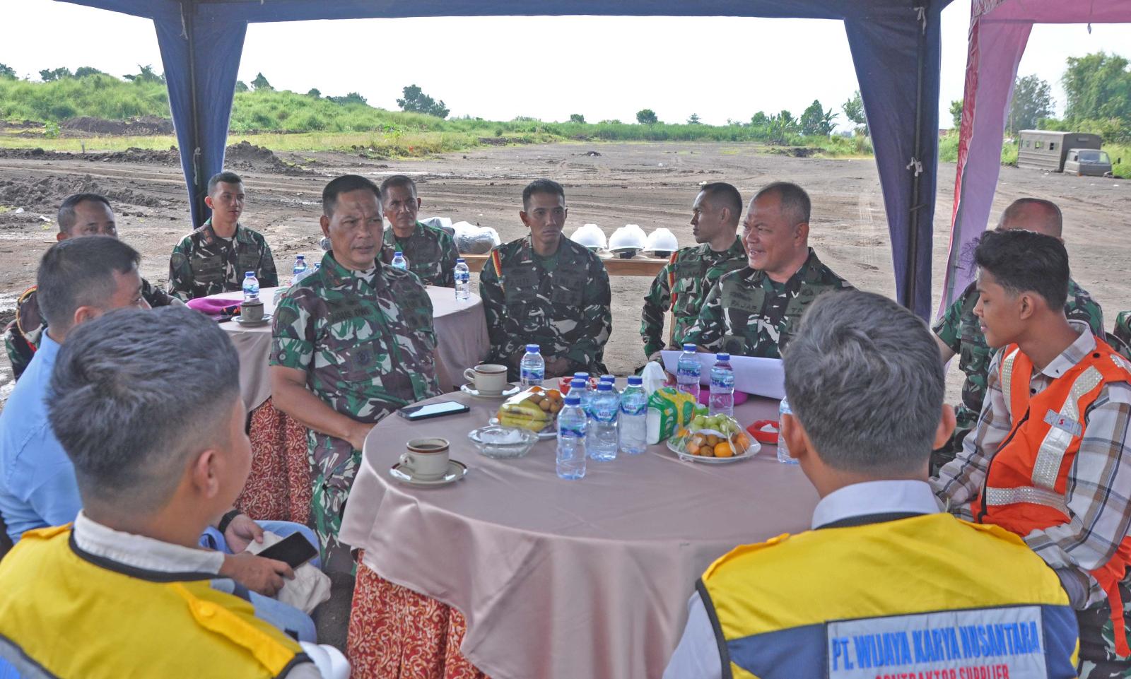 Ir Kormar menerima paparan site plan oleh tim pelaksana proyek dan melaksanakan tour facility meliputi bangunan Mako, ruang Komandan, ruang Wadan, staf, barak kompi, rumah jaga, dan direksi kit.