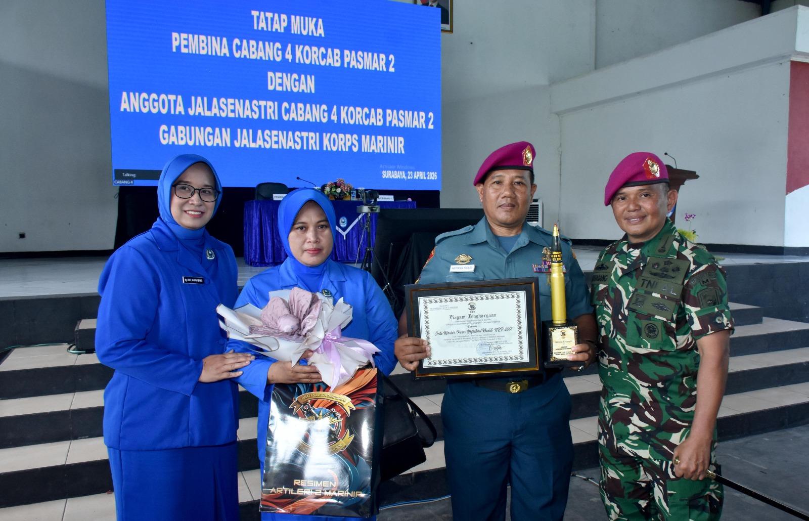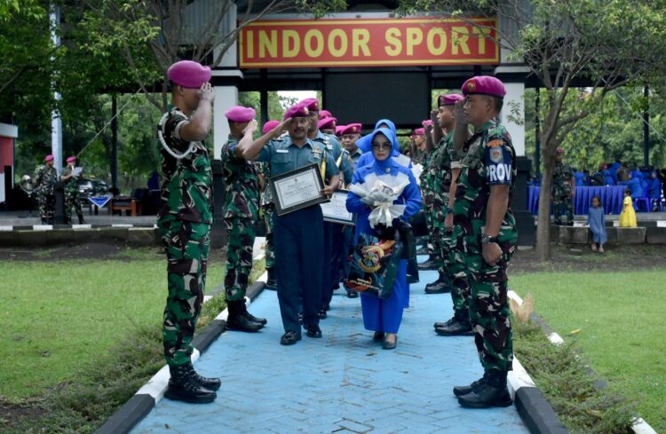 Dispen Kormar TNI Angkatan Laut (Surabaya) — Komandan Resimen Artileri 2 Marinir (Danmenart 2 Marinir) Kolonel Marinir Marhabang, S.H., M.Tr. Hanla., M.M., M.Han., melepas prajurit terbaiknya yang memasuki masa purna tugas dalam rangka pensiun. Kegiatan tersebut dilaksanakan di Indoor Sport Kesatrian Marinir Soetedi Senaputra, Karangpilang, Surabaya, Kamis (23/04/2026).