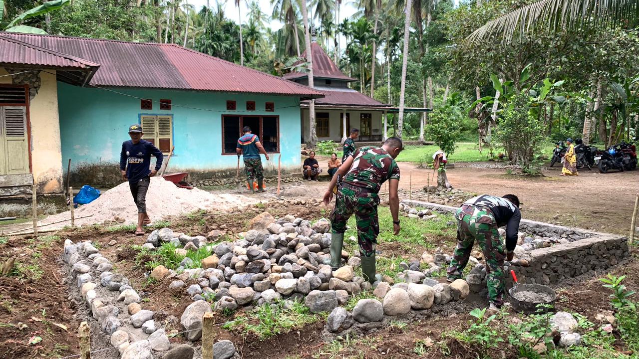 Program kegiatan TNI Manunggal Membangun Desa (TMMD) ke-128 Tahun 2026 melaksanakan rehab rumah tidak layak huni (RTLH) warga kurang mampu tersebut personel Satgas bersama warga melanjutkan pekerjaan pengorekan pondasi,pengecoran pondasi,dan memasang serta menyusun batu untuk pondasi.