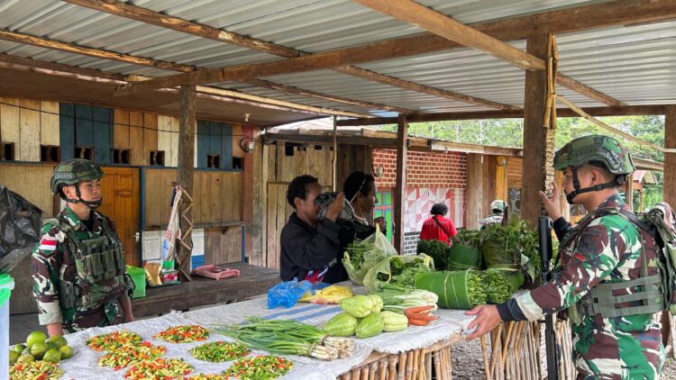 Okpol, Pegunungan Bintang — Pos Okpol Satgas Yonif 751/Vira Jaya Sakti (VJS) melaksanakan kegiatan membeli hasil kebun masyarakat di sekitar pos sebagai bentuk kepedulian terhadap peningkatan kesejahteraan warga di wilayah binaan. Kegiatan ini dipimpin oleh Danpos Okpol Letda Inf Lupi Kuncoro. (Kamis, 23/4/2026).