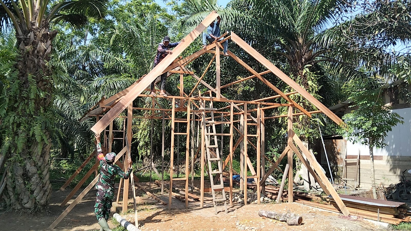 Kegiatan ini merupakan bentuk nyata kehadiran TNI di tengah masyarakat, khususnya dalam membantu warga yang sedang mengalami kesulitan akibat bencana alam. Dengan penuh semangat, Serda Saiful bersama warga bahu-membahu mengerjakan pembangunan rumah agar dapat segera ditempati kembali.